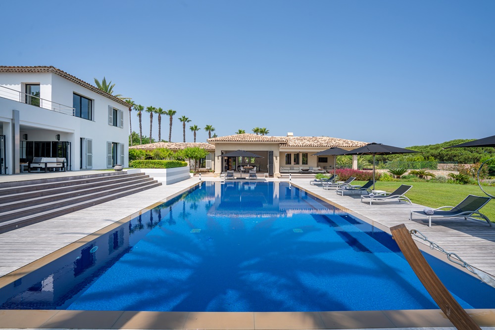 A beautiful contemporary property with 3 villas located in the very sought-after area of “Le Capon” enjoying wonderful sea views and unique landscaped Mediterranean garden overlooking the bay of St Tropez.