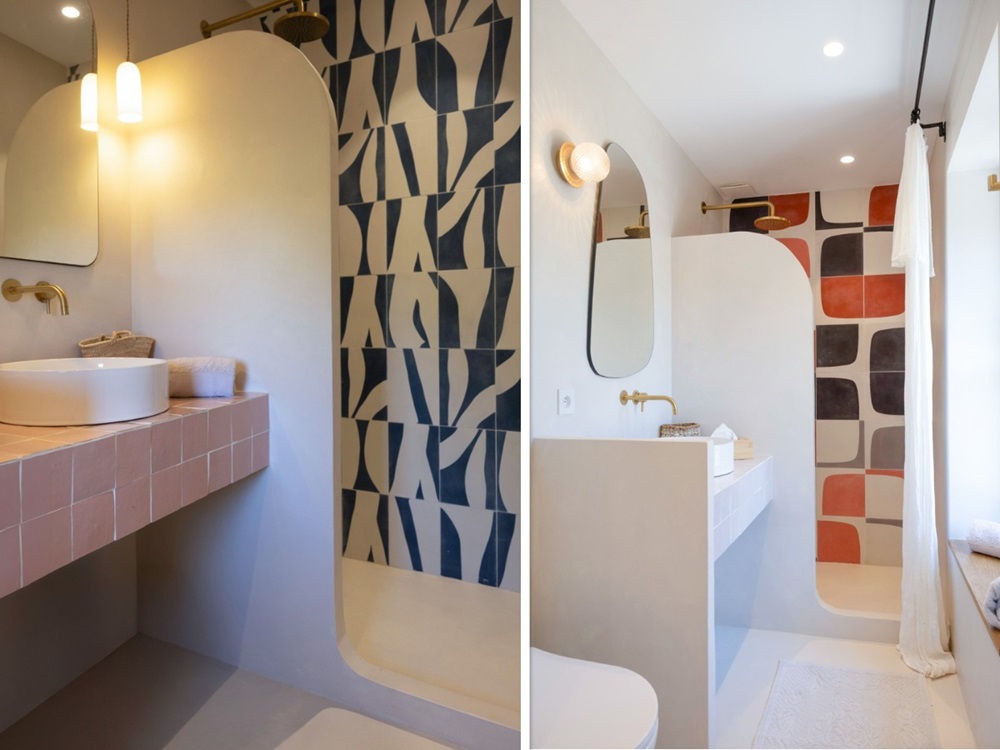Upstairs, a second master bedroom, also with a queen-size bed (160 cm), a sleek shower room with double washbasins and a private WC. The second bedroom offers flexible sleeping arrangements with twin beds (80 cm each) that can be converted into a queen (160 cm). The third bedroom features a queen-size bed (160 cm), along with its own washbasin and shower.